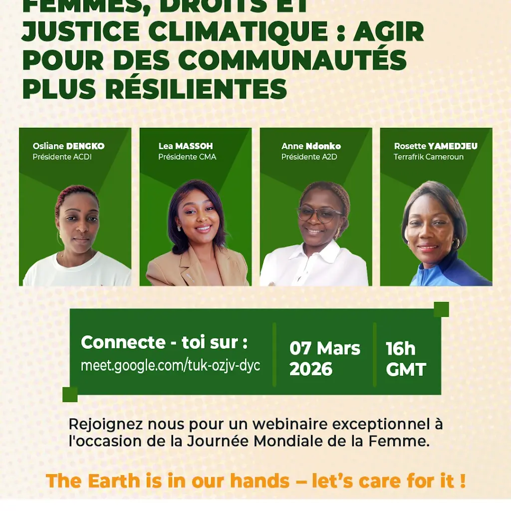 MARS 2026 : Voici un mois qu'une rencontre autour du thème « 𝗙𝗲𝗺𝗺𝗲𝘀 𝗮𝗰𝘁𝗿𝗶𝗰𝗲𝘀 𝗱𝘂 𝗰𝗵𝗮𝗻𝗴𝗲𝗺𝗲𝗻𝘁 : 𝗹𝗲𝗮𝗱𝗲𝗿𝘀𝗵𝗶𝗽 𝗲𝘁 𝗶𝗺𝗽𝗮𝗰𝘁 𝗱𝗮𝗻𝘀 𝗹𝗮 𝗰𝗼𝗺𝗺𝘂𝗻𝗮𝘂𝘁é », a regroupé des femmes issues de divers associations de notre réseau; elles se sont réunies au siège de TERRAFRIK CAMEROUN pour partager, débattre et s’inspirer, notamment à travers le film marquant " A la vie, à la terre : Cameroun, la terre des femmes du Comité Français pour la Solidarité Internationale ; cette projection à ouvert un débat et suscité des témoignages puissants.